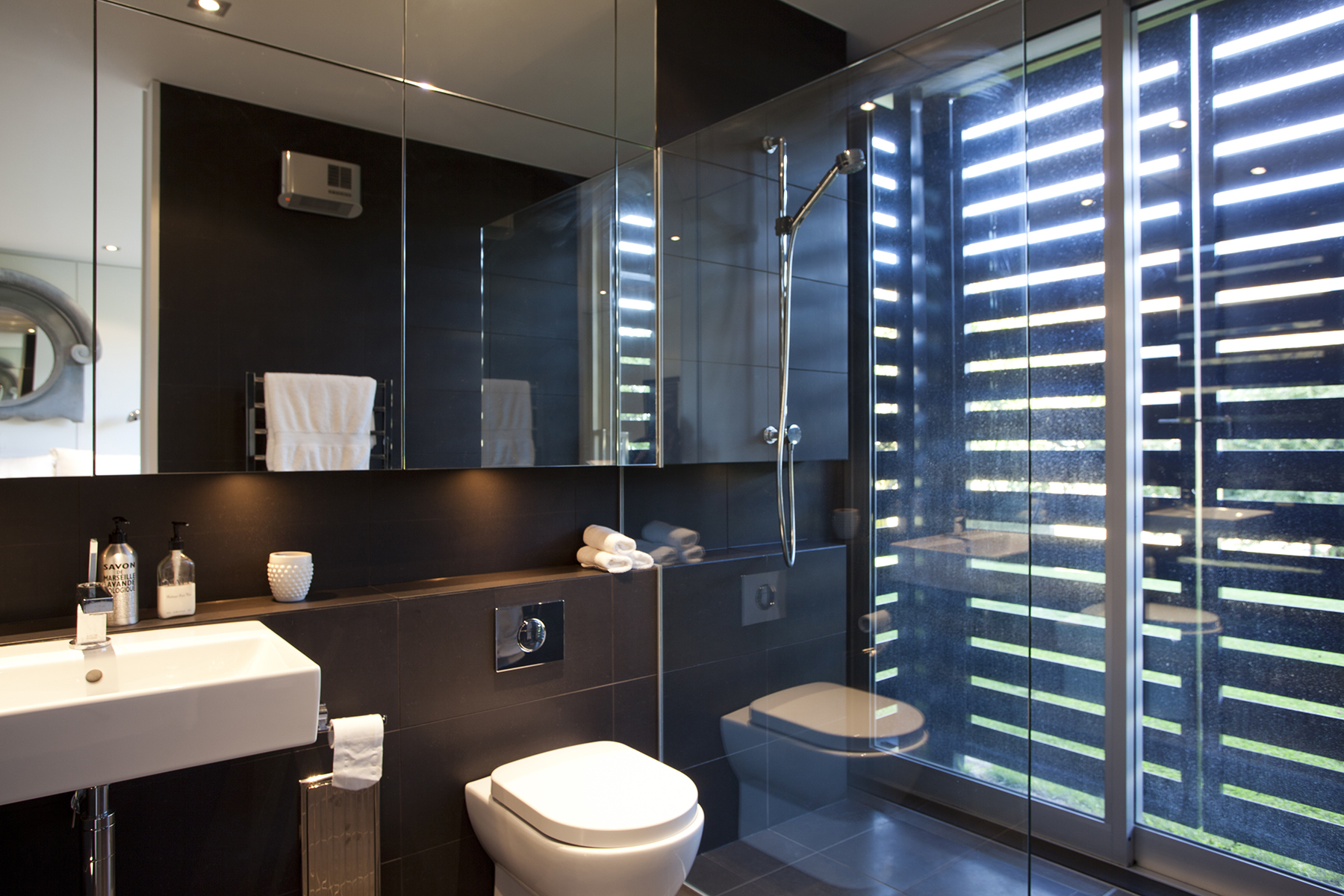 Openings have been increased in scale to frame picturesque views, which are complemented by a series of sculptural works in the landscape. The addition of a new loft space above the existing garage provides an alternative bridged connection to the landscape and private guest quarters which are semi-connected to the main house.