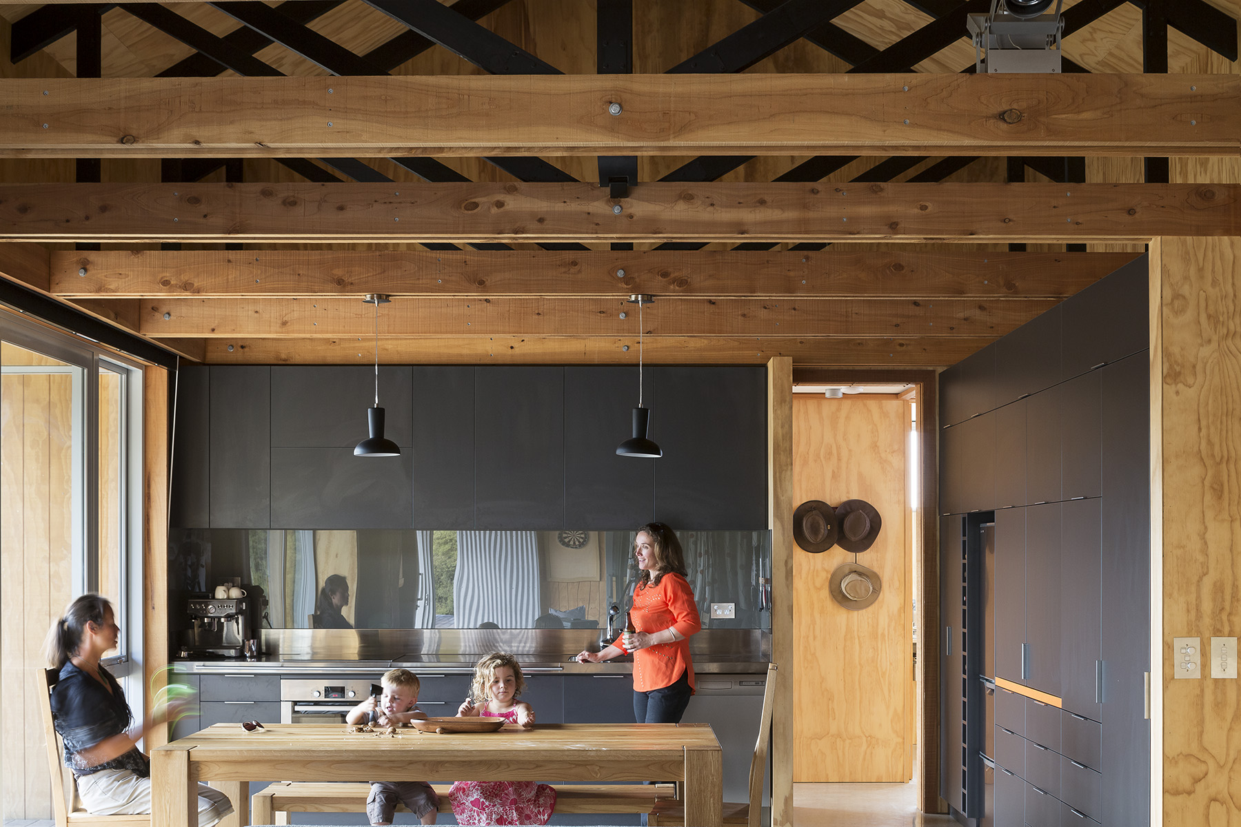 ‘Sufficiency of space and adequacy of amenity, along with economy of planning and attention to detail, characterise this holiday house which takes as its role model the Kiwi tramping hut in a bush clearing. It is a pleasure to discover a modern vacation home that so clearly renounces profligacy in favour of design rigour and conceptual consistency. The simplicity of the building is testimony to the resolved nature of the ideas that generated it. Unfussy in form and eminently habitable, the modestly-sized house is the best work of architecture for miles around: in the context of its suburban-type development, it reads as a conciliatory gesture to the ineffable Central Otago landscape.’ NZIA