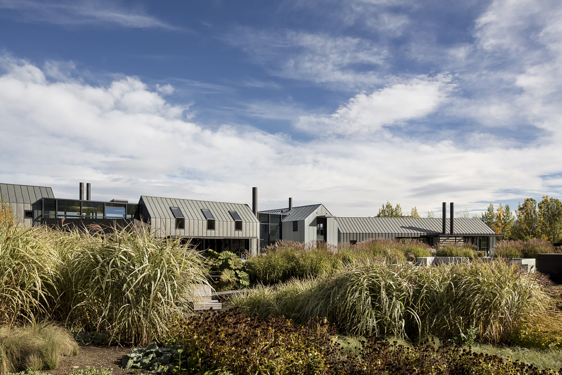 ‘A major renovation expresses the concept of a farmyard gathering of buildings, creating a robust connection to the house’s surrounding rural landscape. Strong, simple and refined forms are connected by glazed infills creating a cohesive plan, elegantly executed. Spaces are refined by their material palette and their scale: space is presented as place. In this house, playfulness and sobriety co-exist in equal measure. Contemplation is the order of the day: walls become backdrops to art as well as artful elements of architecture. Materials appear simple, but are sophisticated in their delivery; craft integrates with architecture to create a stunning home.’ NZIA